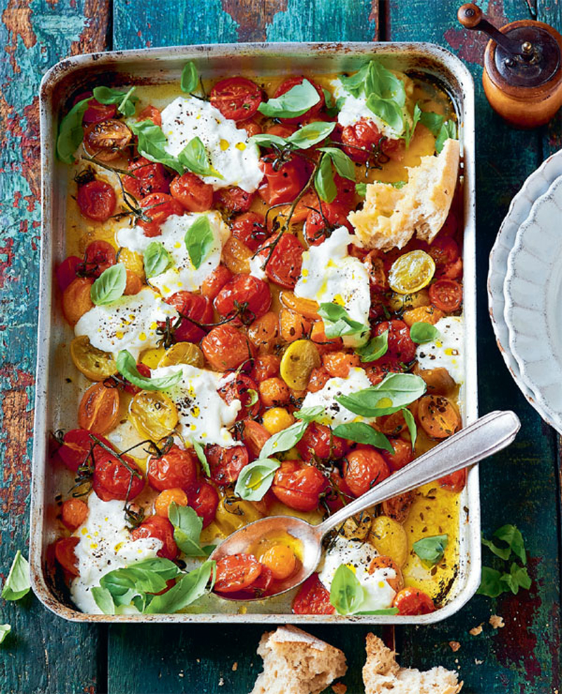 - 10½ oz (300 g) baby plum tomatoes (or use cherry tomatoes)