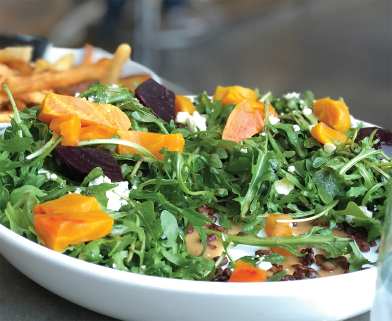 - Place the arugula mixture on a large platter and sprinkle with cooked beets. Drizzle salad with enough dressing to coat lightly. Any extra salad dressing can be stored in refrigerator for up to two weeks in an airtight container.