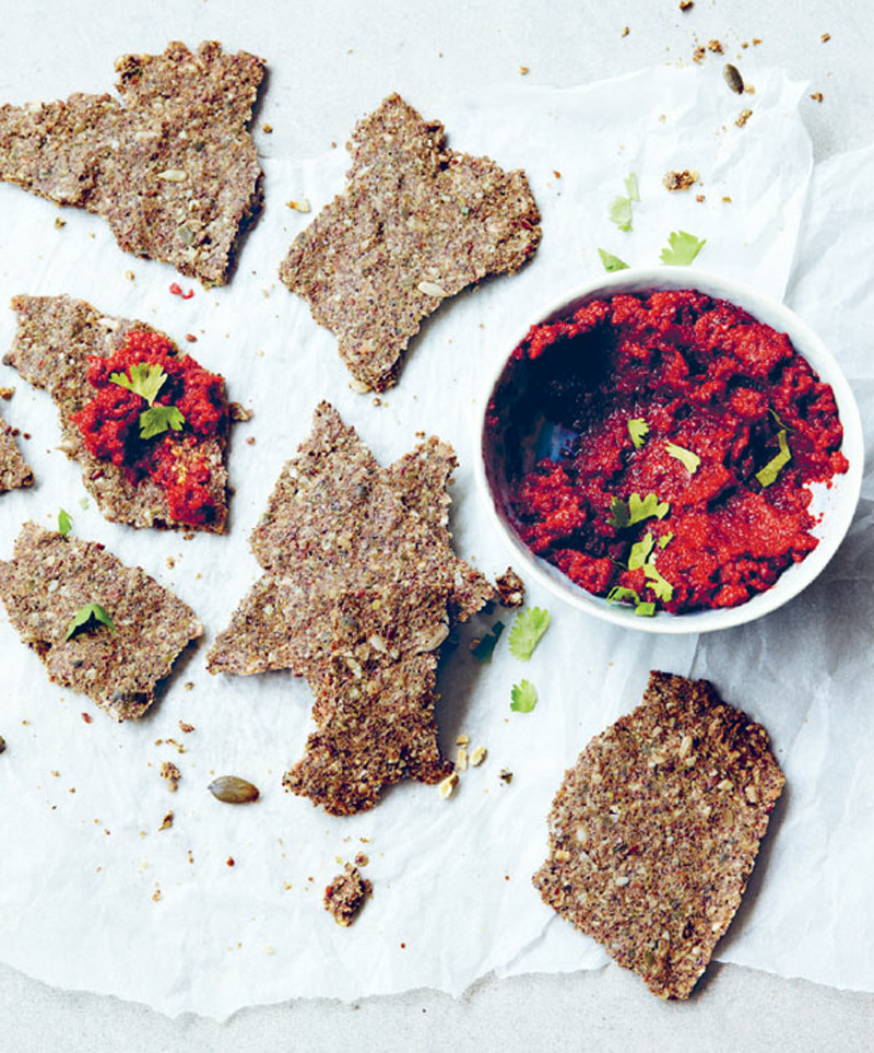 - Pulse all of the dry ingredients in a food processor – you can leave the seeds in a roughly chopped state, if you prefer more texture. Then add the coconut oil and 60 ml/¼ cup water and blend again until all the ingredients come together into a dough. Roll the dough thinly onto the prepared baking sheet and bake in the preheated oven for 45–50 minutes. Set aside to cool, then break into pieces. Store in an airtight container until ready to serve.