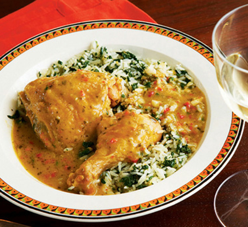 You will see variations on a coconut-curry-tomato theme all over Puerto Rico and the Dominican Republic. This combo is used to braise goat, simmer eggplant, and make a seafood stew. In my take, the tomato, and a whole lot more, comes from my trusty sofrito. All you’ll need to round out the meal is some plain rice but the Spinach Rice would be nice too.