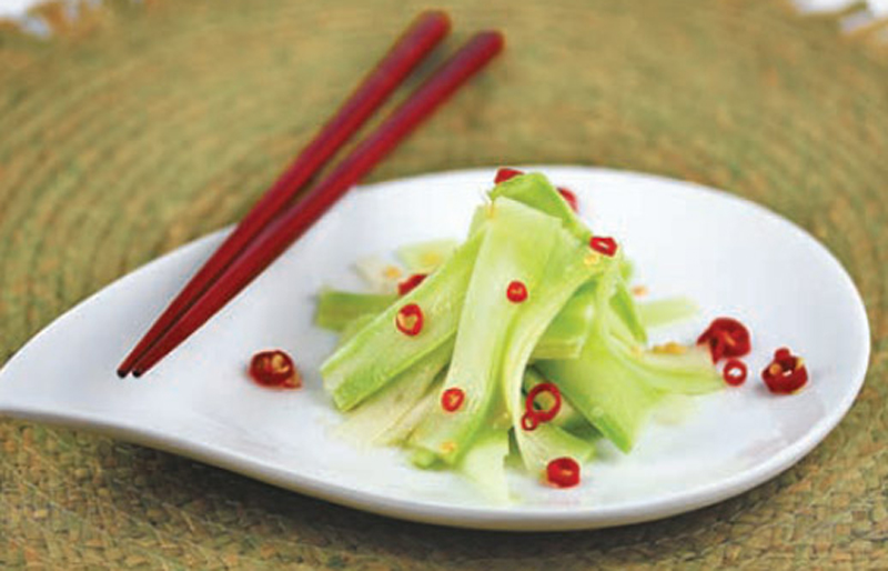 - In a bowl, toss the stem sections with the remaining ingredients and serve as a condiment at the table.