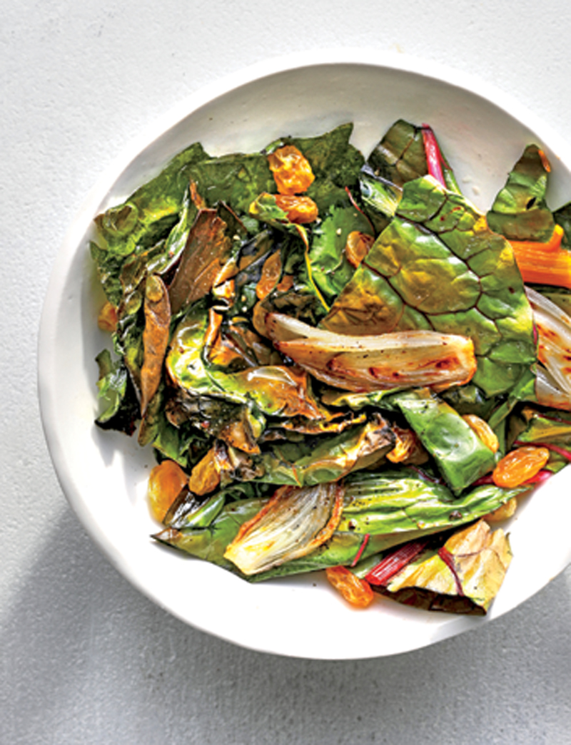 This recipe uses chard leaves, but don’t discard the stems. Chop and add to an omelet, or sauté them in a little olive oil and use as a flavor booster in a grilled cheese sandwich. To turn this side into a vegetarian main dish, top with chickpeas and crumbled feta.