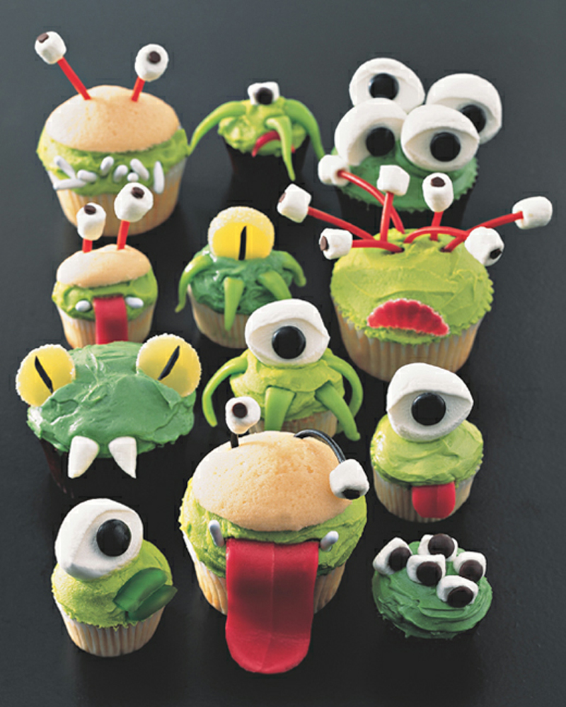 For Halloween, create silly and scary-looking faces with buttercream, candy, marshmallows, and, of course, cupcakes. Decorating the cakes is a great activity for kids and parents to do together: Set out cupcakes and bowls of colored frostings and assorted candies and let everyone create his or her own aliens, monsters, and beasts.