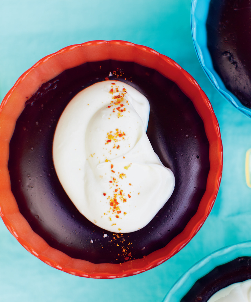 Chocolate has a long history in the Basque region, since the Jews, fleeing persecution in Portugal, first introduced it to Bayonne in 1609. By the nineteenth century, chocolate had become so popular that Bayonne boasted 33 chocolate ateliers with more than 130 chocolate masters. This chocolate pudding is rich and unctuous, but its richness is offset by the crème fraîche. It is delicious hot or cold.