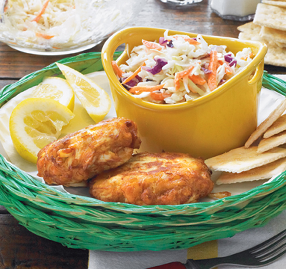 - Whisk together first 5 ingredients until blended. Stir in crabmeat and crackers. Shape mixture into 8 patties. Place patties on a wax paper–lined baking sheet; cover and chill 1 hour.