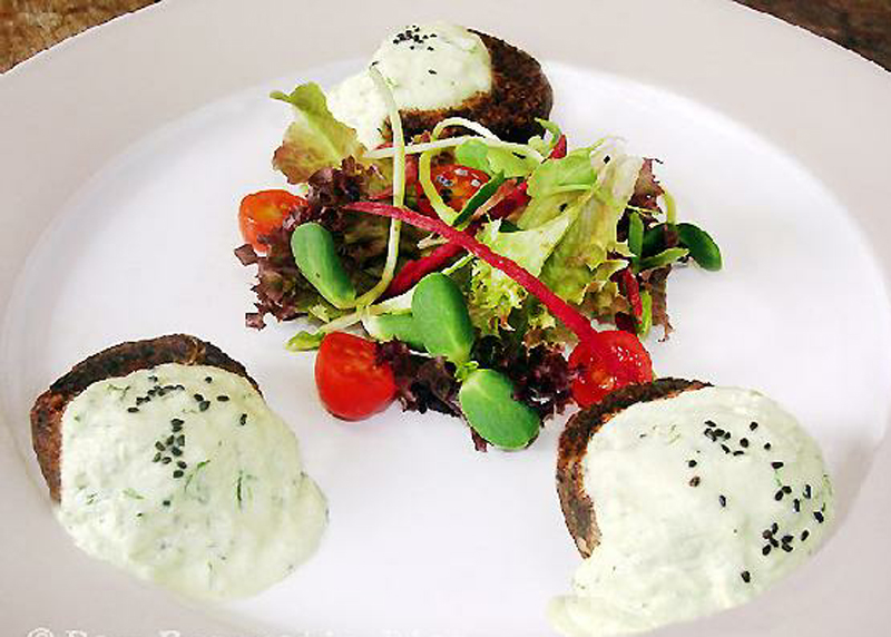 Raw version of Middle East classic vegetarian street burger, served with the refreshing Greek yogurt sauce.
