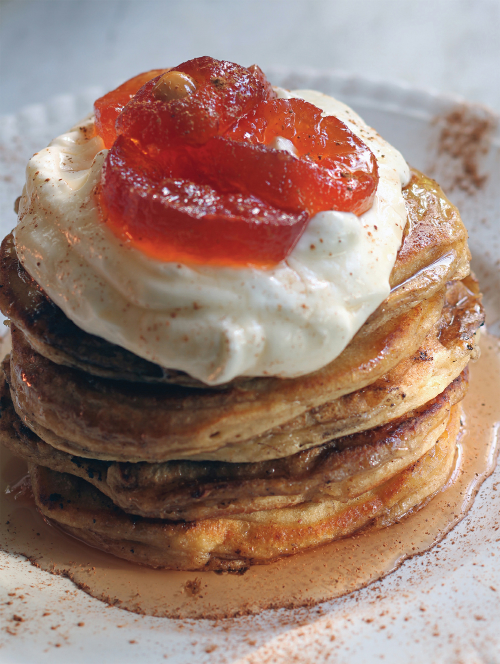 - Pour the batter into the skillet, a ladleful at a time, to form pancakes that are about 4 inches (10 cm) in diameter. Don’t overcrowd the skillet. Flip the pancakes when the underside is golden brown and continue to cook until both sides are golden. Transfer to a plate, dabbing each pancake with a little butter as you stack them. Continue until the all the batter has been used, adding butter to the skillet between batches as needed. Serve hot.