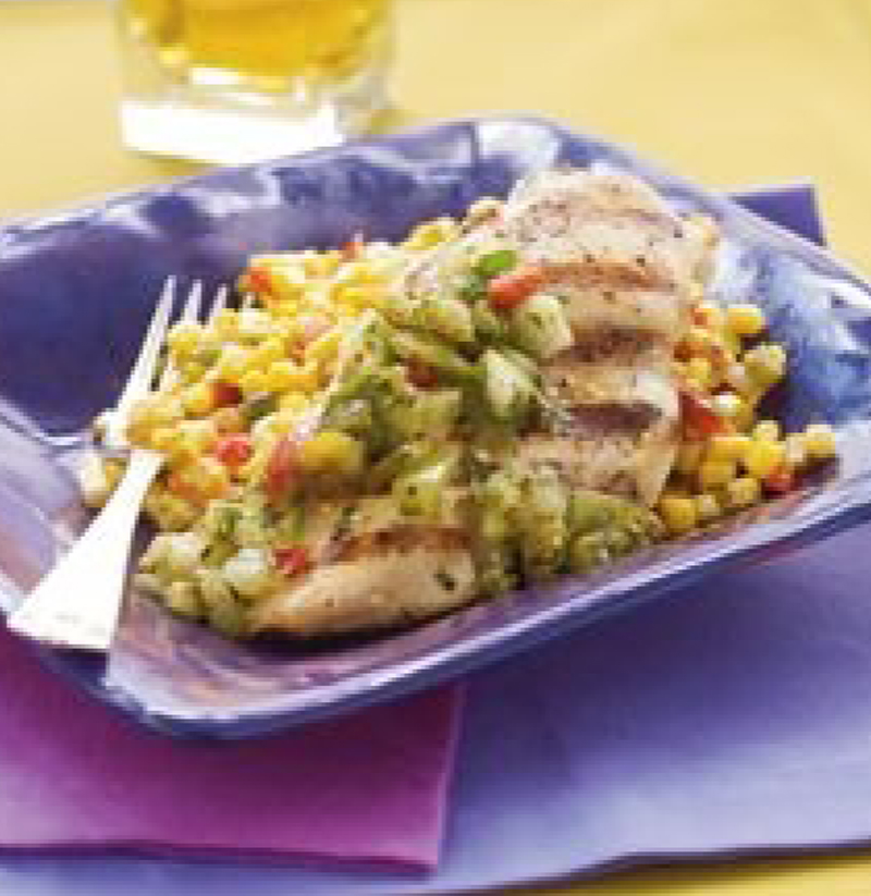 You’ll only need to purchase one package of prechopped green, yellow, and red bell pepper to use in the salsa and the corn.