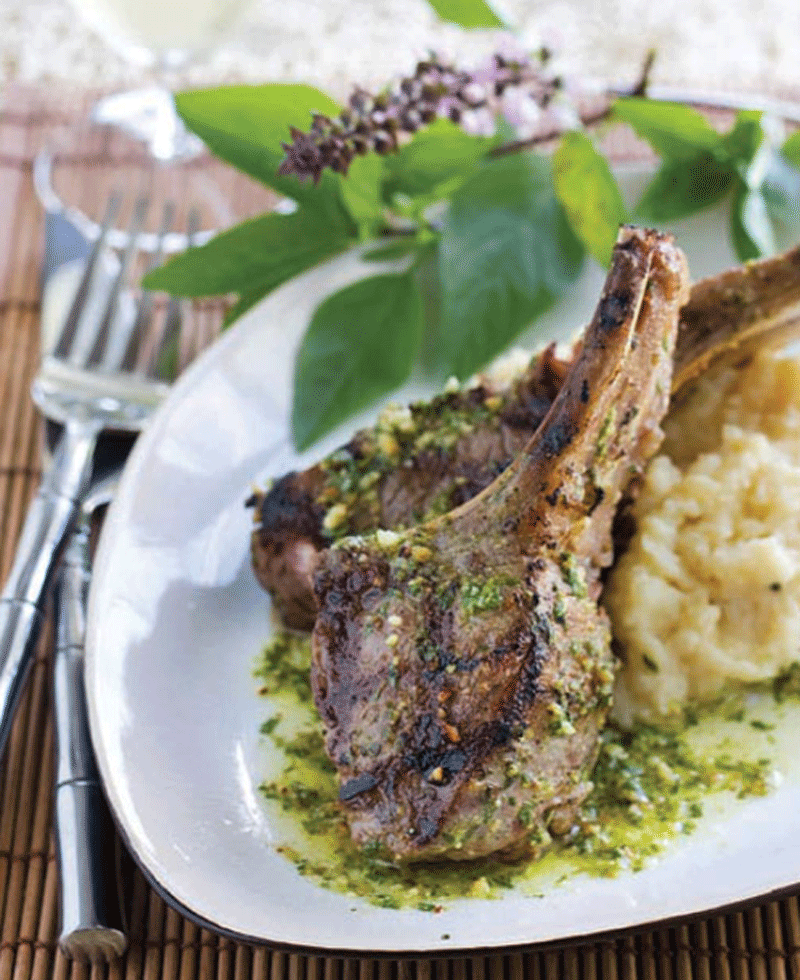 - To serve, spoon some of the reserved Asian Pesto on top of each of the lamb chops.