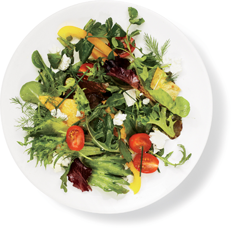 Herb salad mix with tomatoes, pepper, and feta recipe