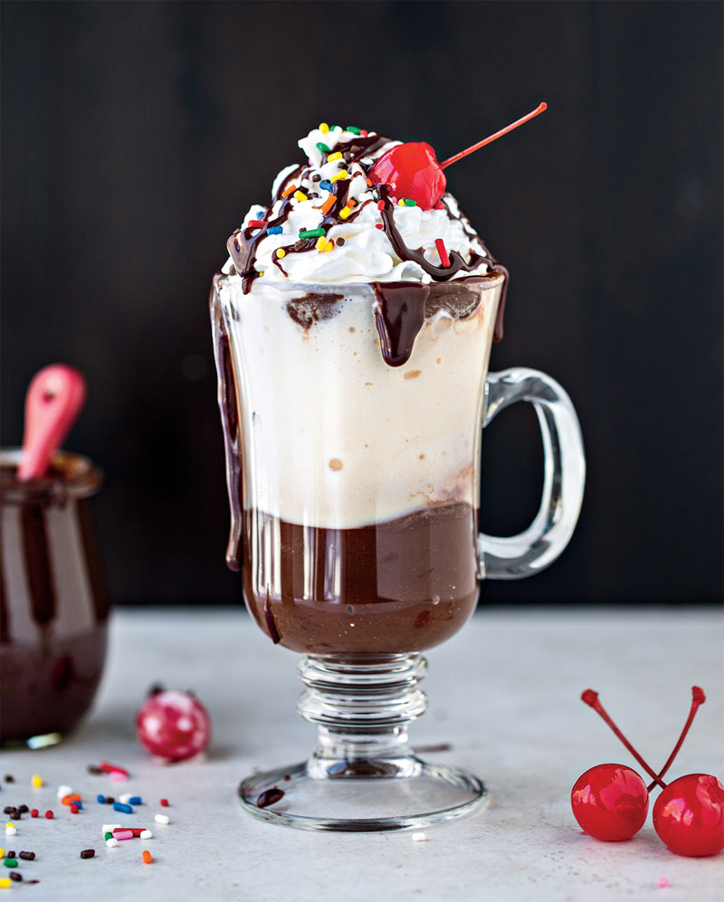 - In a large saucepan, combine the chocolate chips, sugar, evaporated milk, and butter and heat over medium-low heat, stirring continuously, until the chocolate, sugar, and butter have melted and the mixture comes to a light boil, 5 to 7 minutes. Remove the pan from the heat and stir in the vanilla. Let cool for 5 to 10 minutes before serving; it will thicken as it cools.