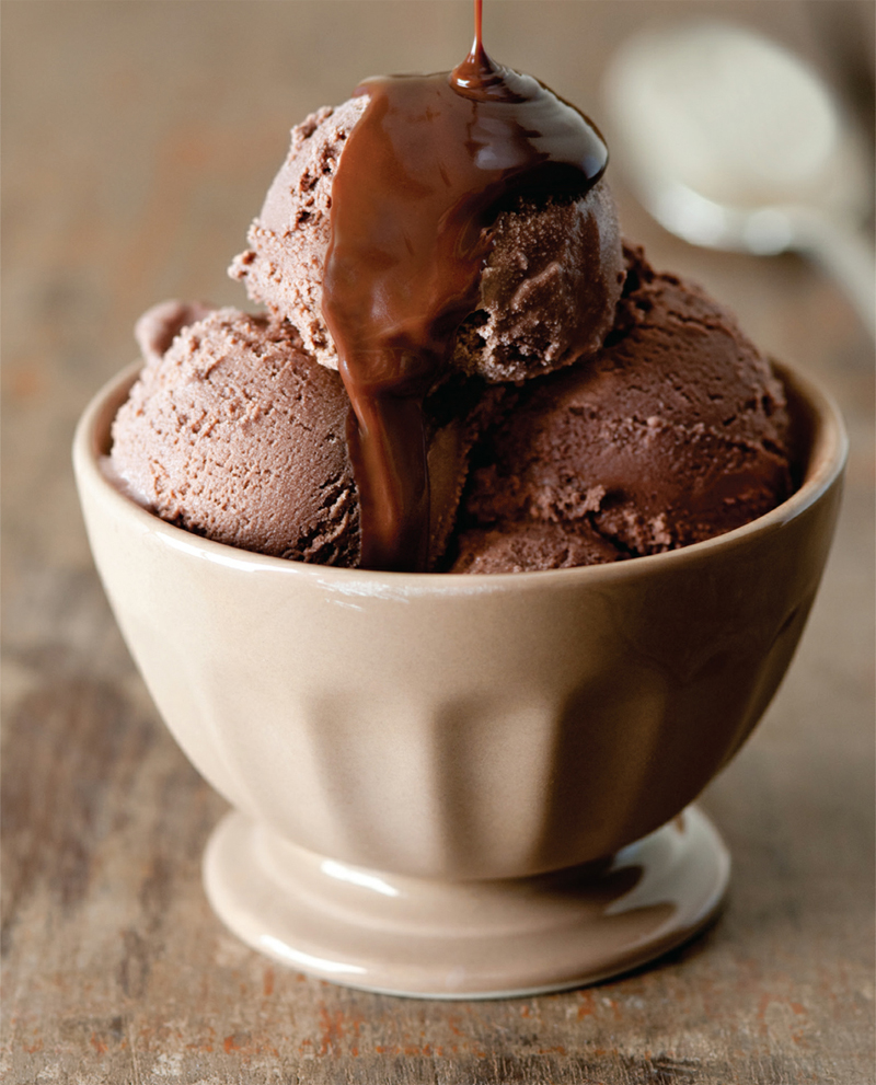 It’s the cold-comfort food equivalent of hot cocoa—chocolate ice cream made with Dutch-processed cocoa powder (darker in color and more flavorful in ice creams). Made without eggs, this ice cream is much less rich than those made with a custard base. The lack of eggs also allows the cocoa flavor to shine through, making it light in texture yet intense in taste. A show-stopping dinner party dessert.