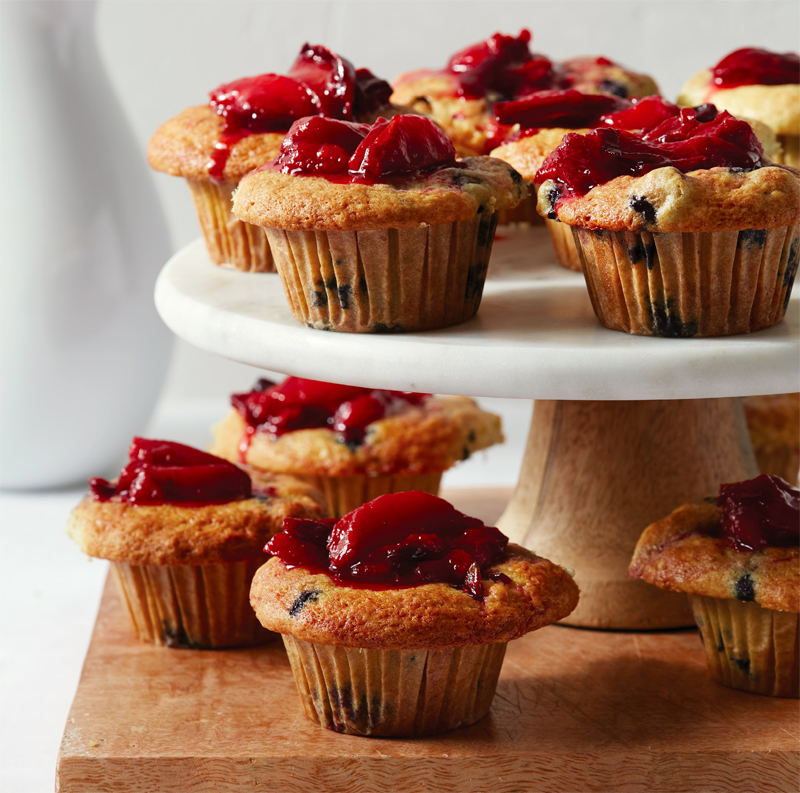 Eat with your eyes. This is a versatile muffin to fill and pile high with your favorite fruit. Whether bursting with blueberries, raspberries, figs or plums, the compote topping is just as important as the fruit inside.