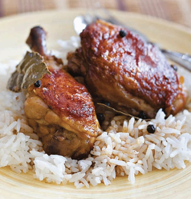 5. Pour the Adobo Sauce over the chicken and serve over rice.
