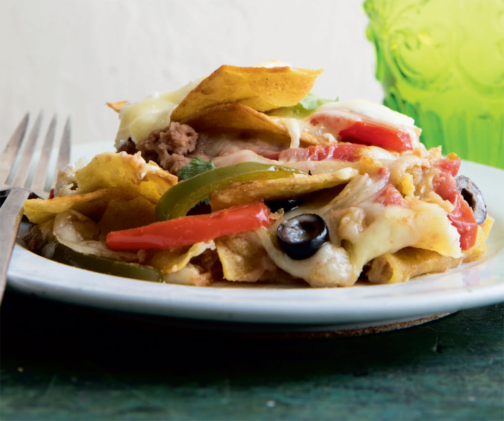 There are as many names for this dish as there are recipes. In Mexico, this dish would probably be called budin Azteca, or Aztec Pie. When the pie crossed the border in Texas, it was readily adapted and made with beef, or chicken, or beans. It may be called Mexican lasagna, stacked enchiladas, tortilla torte, torta tortilla, or Southwestern casserole. By whatever name, the dish is a home-style favorite, with layers of tortillas, salsa, and cheese.