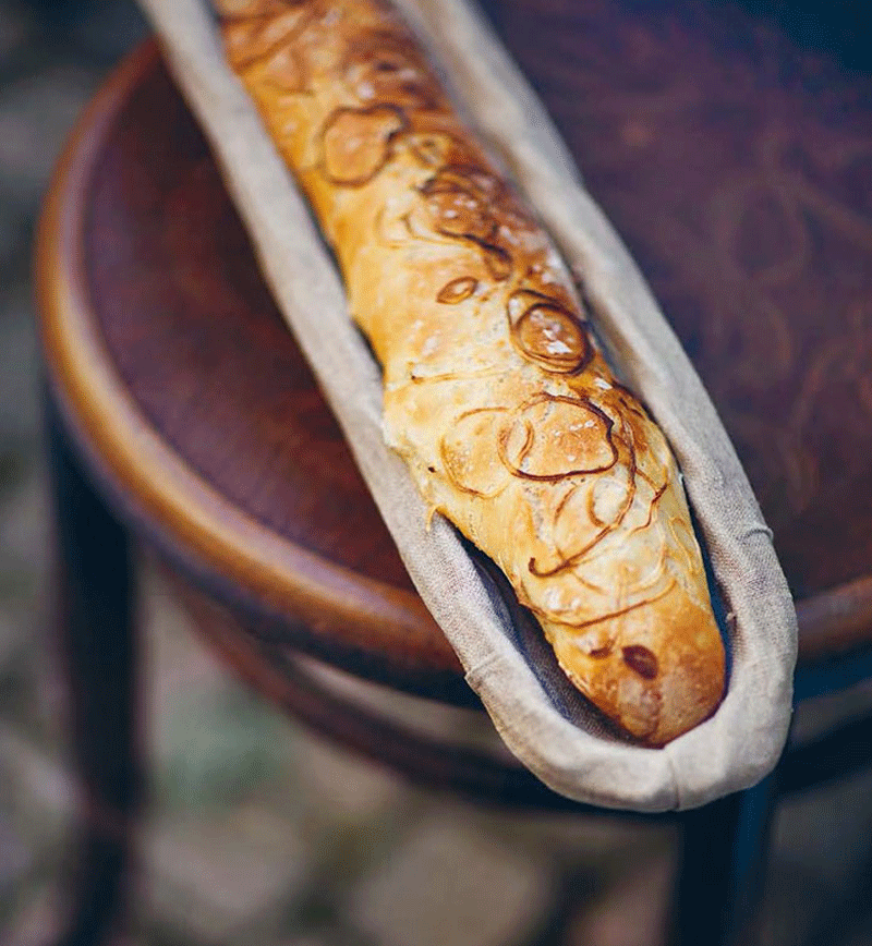 - Make the baguettes according to the basic recipe. Knead fried and finely chopped onion into the dough along with the extra flour.