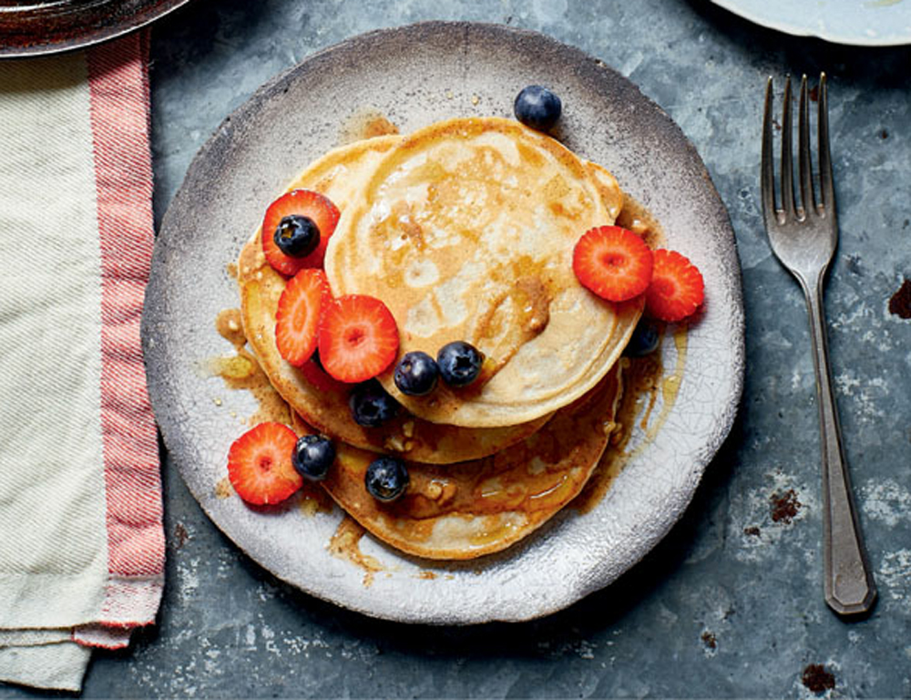 Pancakes are always a crowd-pleaser. Whether you like them stacked up high, served traditionally with sugar and lemon, or covered in all kinds of peanut butter or chocolate decadence, these light and fluffy pancakes are for you. These are the American-style versions, which are ideal for making in small, puffy discs.