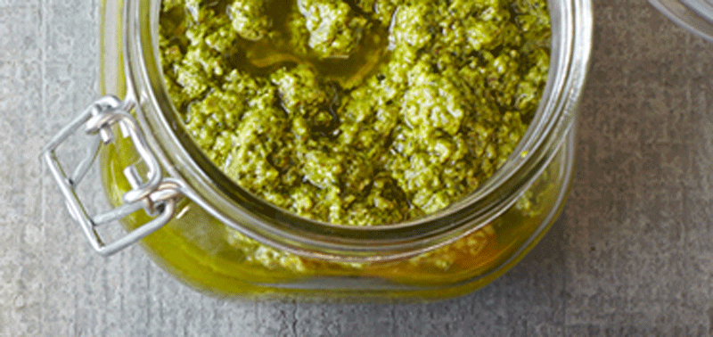 - Scrape the pesto into a bowl and stir in the cheese. Season with salt.