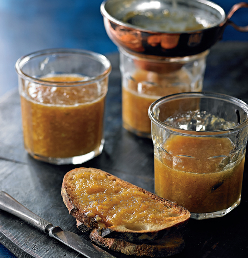 - Using a pair of kitchen tongs, remove the vanilla beans and reserve. Pour the hot jam into the sterilised jars, making sure you don’t spill any on the rims. Add one halved vanilla bean to each jar and seal immediately. Label the jars and write the expiry date (3 months from the day they were made) on them. Set aside until cool, then store in the fridge.
