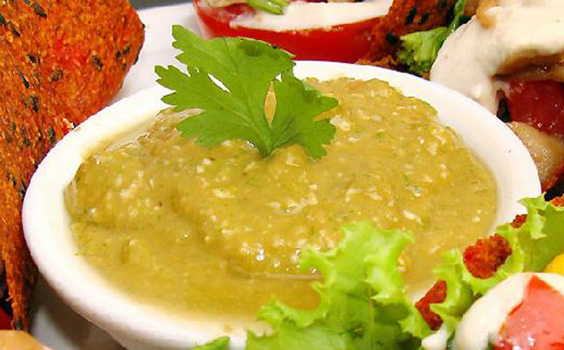 A strong flavor Italian pesto sauce with pine seeds.