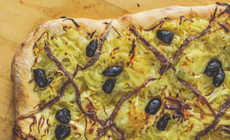 Imagine sitting on a sun-drenched terrace overlooking the glistening Mediterranean, a glass of chilled rosé in hand and contentedly chomping on the utter deliciousness that is pissaladière – sweet and very slow-cooked onions topped with salty anchovies and olives baked on an olive oil dough; this has to