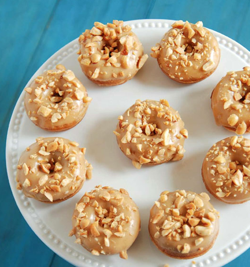 - Dip the top of each donut into the frosting and transfer to a wire rack. Immediately sprinkle the top of each donut with chopped peanuts. Let frosting set for 5 minutes and then serve. Donuts can be stored in an airtight container for up to 2 days but are best when eaten fresh.