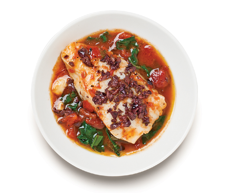 - Nestle the fish in the chard mixture. Cover and cook until the fish is opaque, 10 to 12 minutes. Serve with the tapenade.