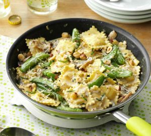 Ravioli-with-snap-peas-&-mushrooms-recipe