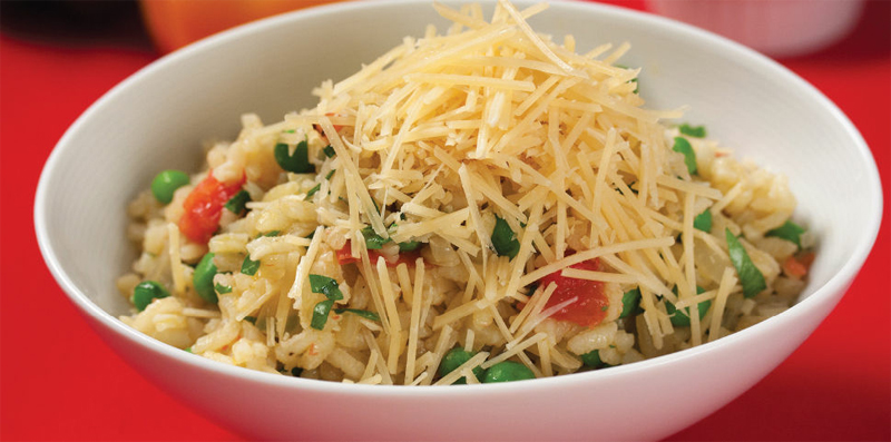 - When the rice is just tender, add the tomatoes, peas, parsley, basil, thyme, salt, and pepper and cook for 10 more minutes.