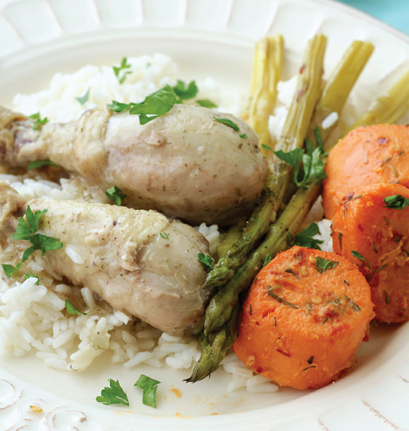 - Sprinkle with remaining parsley flakes. Add water around the chicken.
