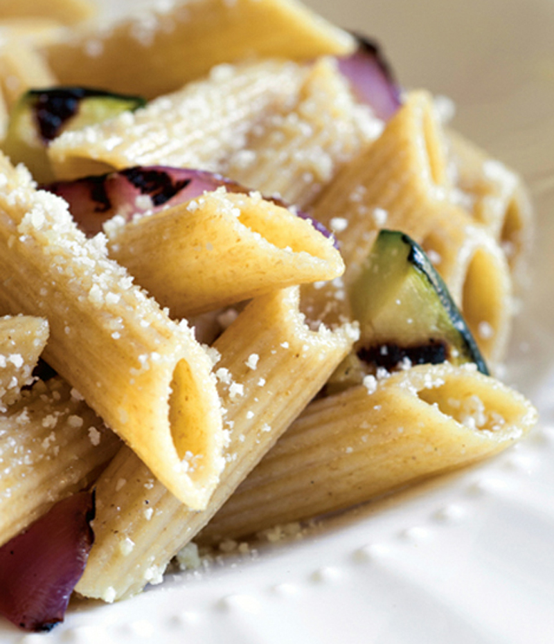 - Toss the pasta with the vegetables. If dry, add a Tablespoon of reserved pasta water at a time until it reaches the desired creaminess. Season with the salt and pepper. Top each serving with a dollop of the ricotta cheese blend.