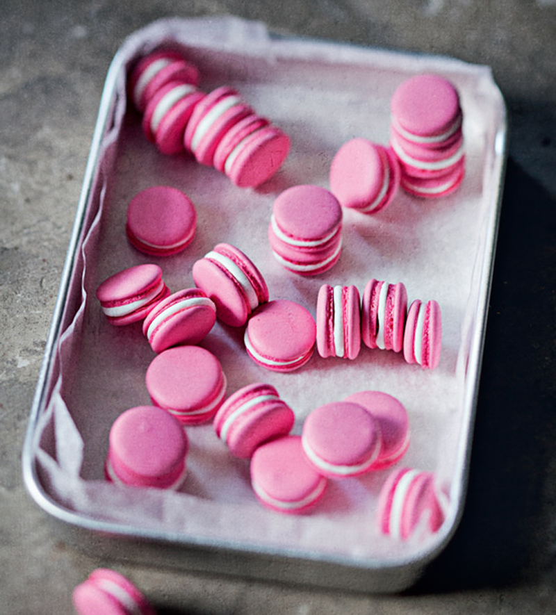 - For rose red velvet macaroons replace the pink food colouring with red, leave out the rose essence and replace the butter icing with cream cheese icing.