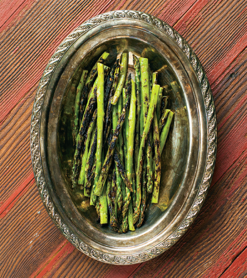 - Grill for 10 minutes or until soft, turning occasionally, removing some of the thinner spears as they cook. Serve warm with a squeeze of fresh lemon juice.