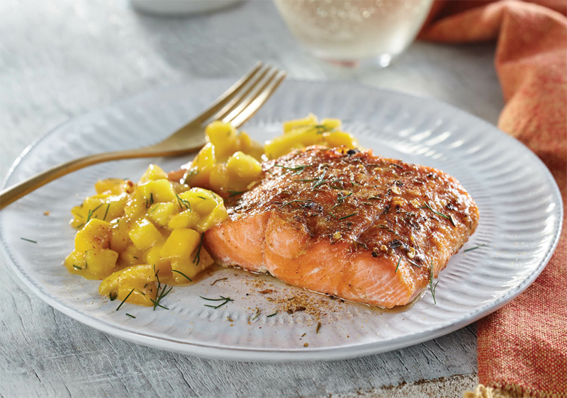 This is a go-to entrée when time is of the essence. The Chile Honey delivers just the right amount of sweet heat, while keeping the salmon moist, and the mango adds a tropical flavor and a touch of silkiness to the sauce.