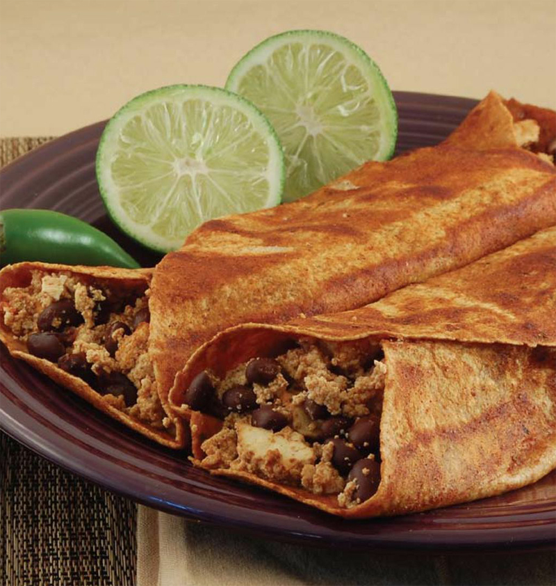 - Spoon filling into wraps, fold over, and place in an oven-safe dish crease side down.