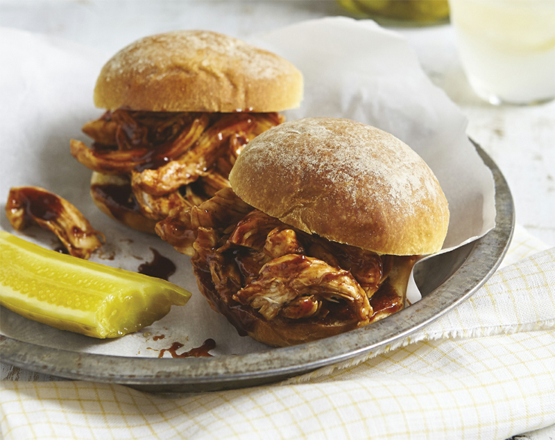 If you are looking for a quick and easy weeknight staple, this recipe is for you! It’s as easy as tossing the chicken into the slow cooker and pouring in the barbecue sauce the slow cooker does all the work. Simply shred the cooked chicken with two forks. To serve, pile it onto yeast rolls with an extra bit of barbecue sauce. Then top it off with dill pickles. It’s that easy!