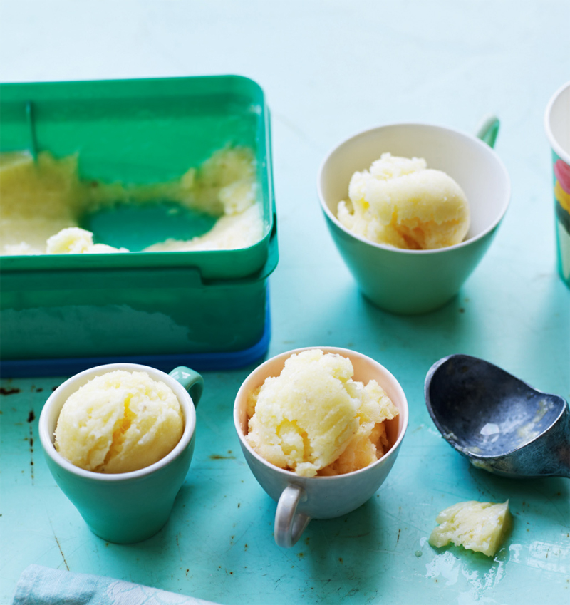 2. Freeze in an ice-cream machine according to the manufacturer’s instructions. Alternatively, put in a container in the freezer and leave for an hour. Remove from the freezer and whisk, then return to the freezer. Repeat this process two or three more times.