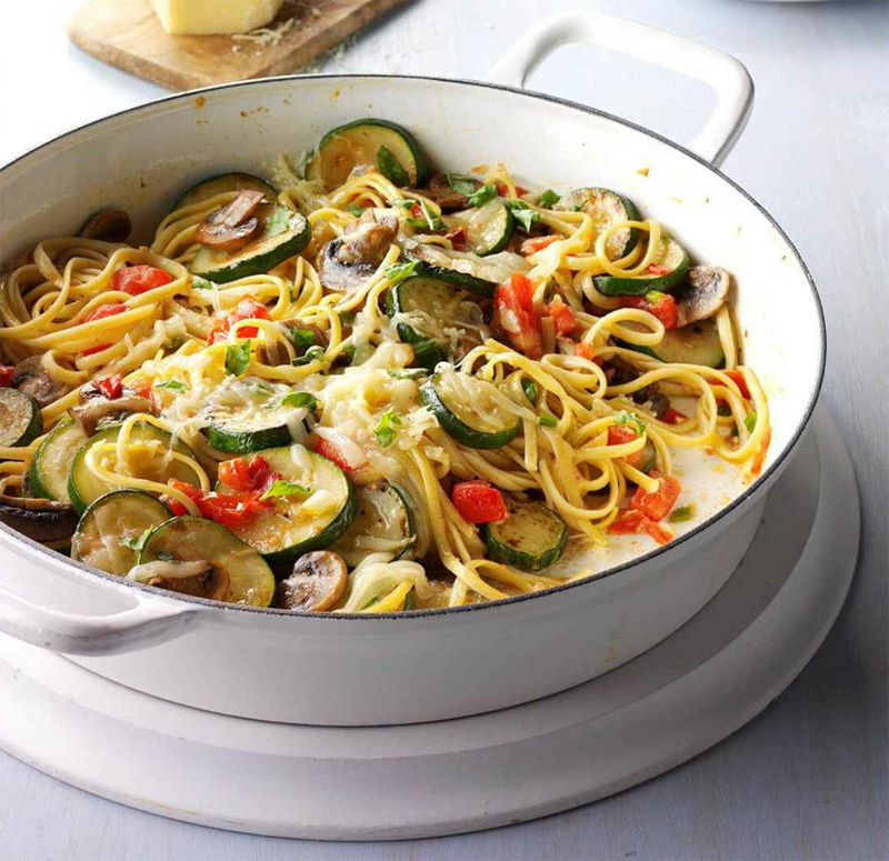 - Add the vegetable mixture to the linguine.
