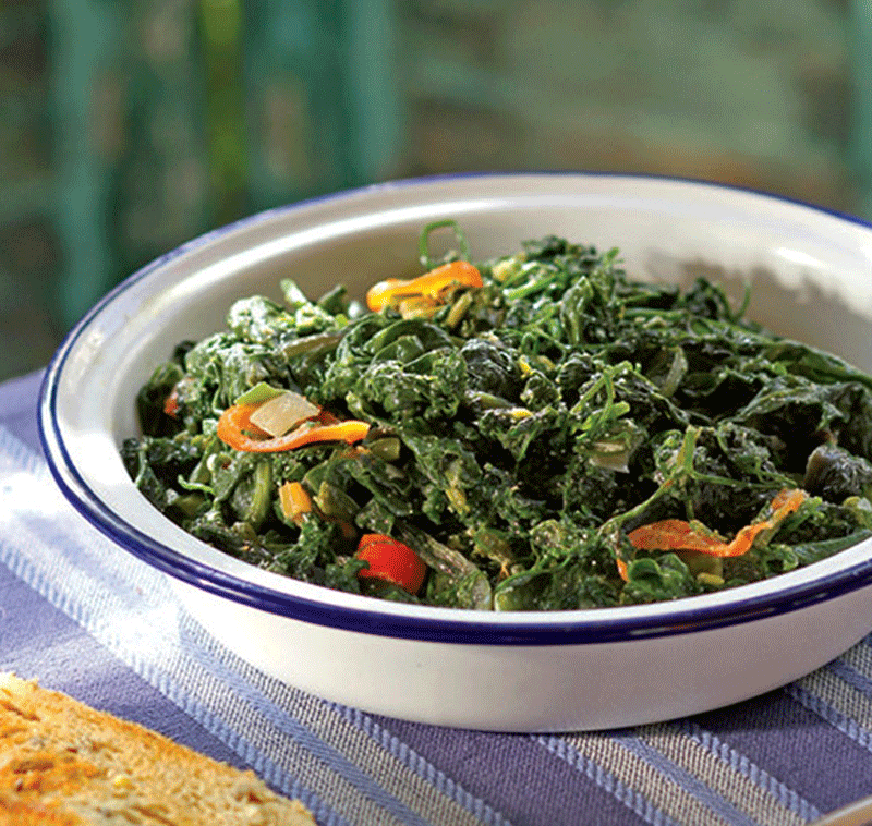 Aromatic greens cooked with roe and chile pepper recipe