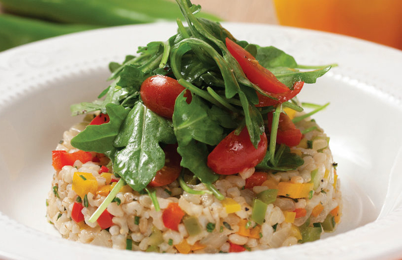 - Add the rice, parsley, tarragon, salt, and pepper and sauté for 3 – 5 minutes.