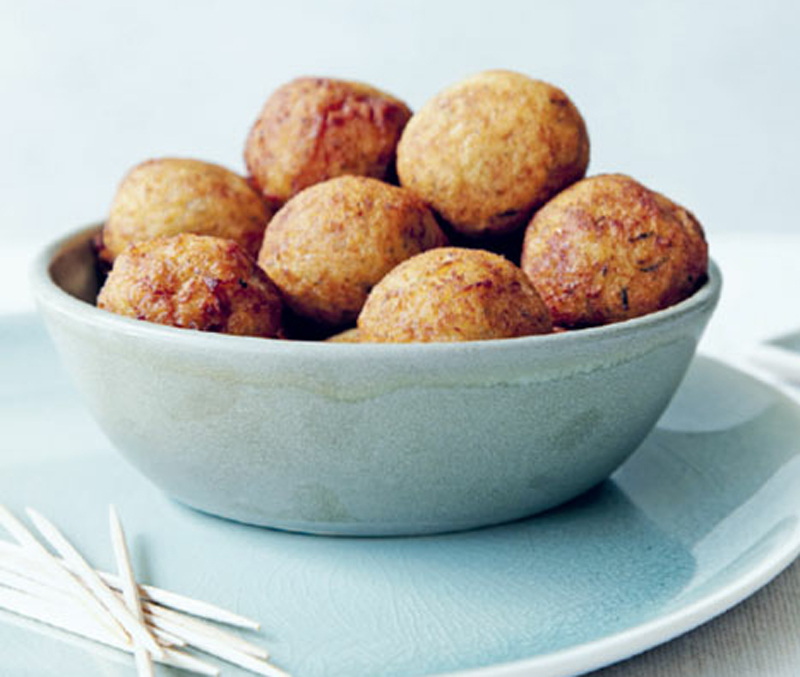 4. Fill a large frying pan/skillet with vegetable oil so it is 2½ cm/1 inch deep. Set over a medium–high heat and, when hot, drop a small amount of the cauliflower batter into the pan if it sizzles, the oil is ready to cook with. Carefully put the cauliflower balls into the pan and cook for 2–3 minutes on each side.