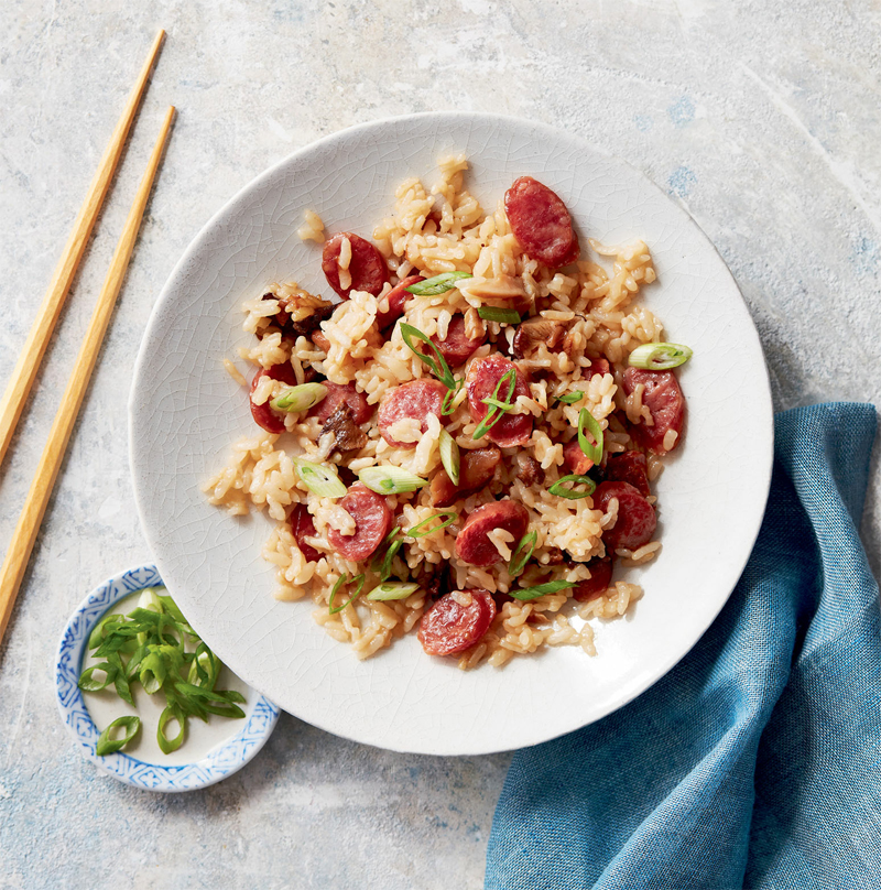 - Divide the rice mixture among 4 serving plates. Top each serving with sliced scallions.