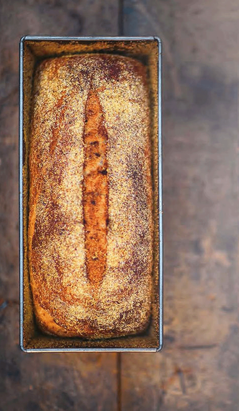 10. Put the bread in the middle of the oven and throw 75 ml (3 fl oz) of water on the bottom of the oven (to get a fine, crackled crust). Lower the heat to 200°C (400°F/gas 6) and bake for about 45 minutes. Turn the breads out of the tins and let cool on a rack.