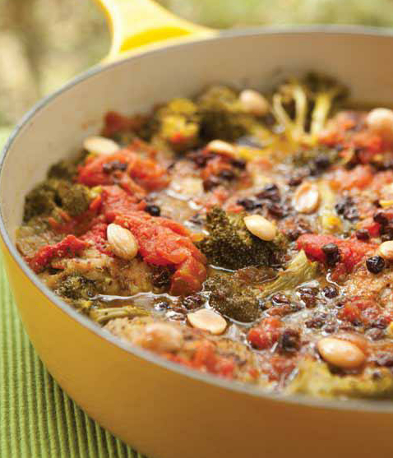 - Cover and cook for 25–30 minutes, then add currants, stir, and place back in the oven for another 5–10 minutes or until chicken is cooked through.