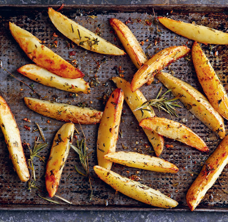 The smell of roasting garlic and rosemary infuses these potato wedges with sunny mediterranean flavours. To keep the good feelings going, serve with the vegan garlic mayo dip and it will seem like summer, no matter what the weather.