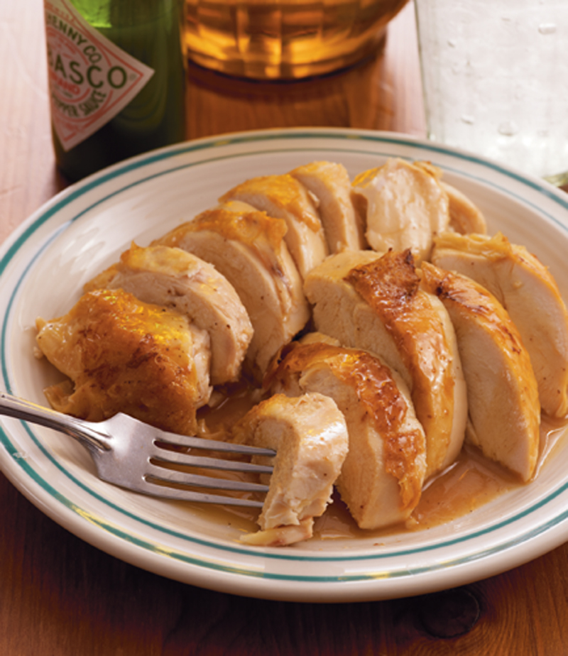 - Bake chicken at 500° for 20 minutes; reduce oven temperature to 350°, and continue to bake 55 more minutes or until a thermometer inserted in the breast registers 170° and chicken is done, basting every 20 minutes with melted butter.