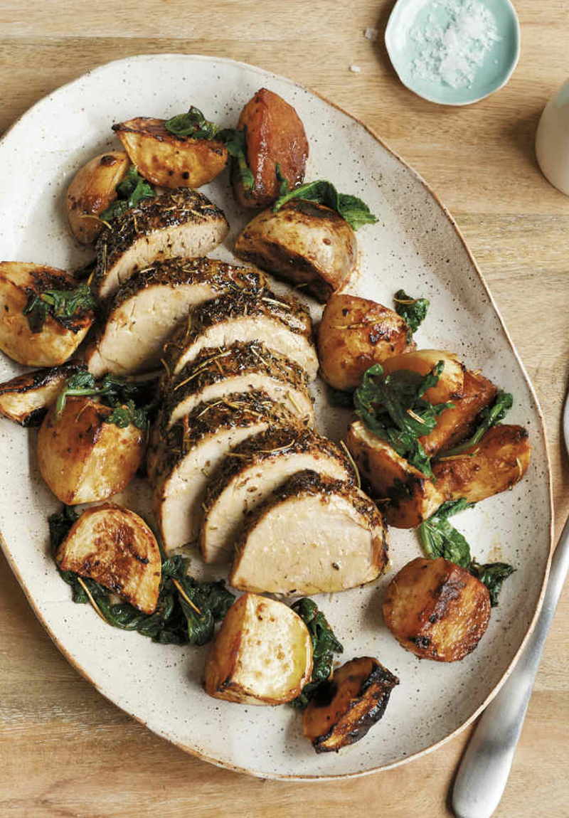 Herb-crusted pork tenderloin with miso roasted turnips recipe
