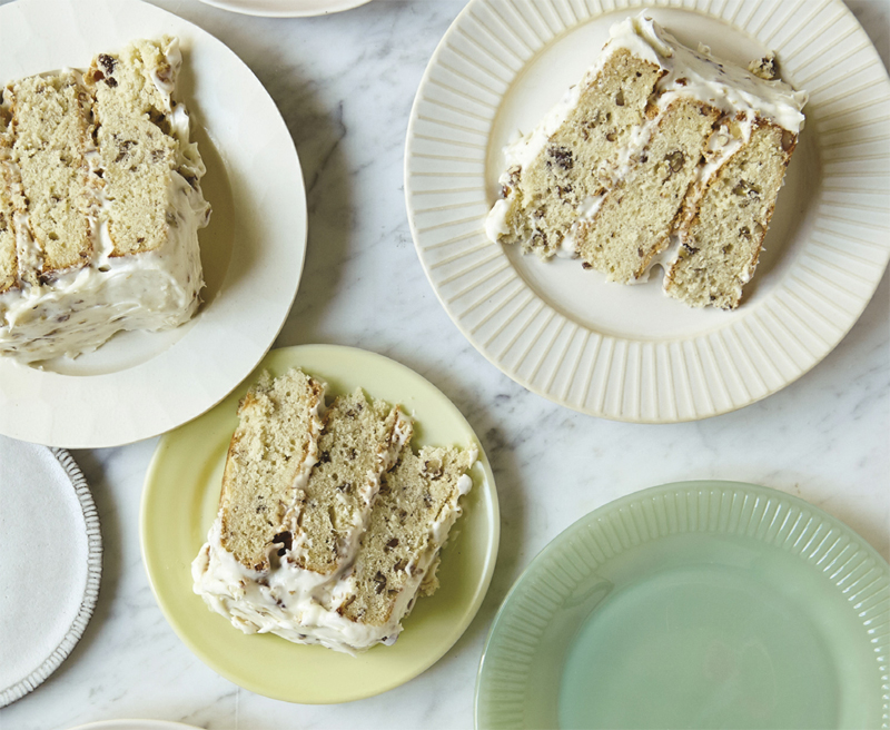 9. Spread the frosting over the top of one of the cooled cake layers. Add a second cake layer and spread with frosting. Top with the remaining cake layer and frost the top and sides of the cake. Because of the cream cheese in the frosting, this cake needs to be refrigerated.