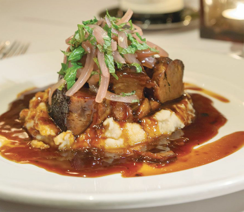 - Spoon warm White Bean Purée onto a plate; top with Pork and drizzle with sauce. Drain the Pickled Red Onions and combine with mint; use to garnish the Pork. Serve immediately.