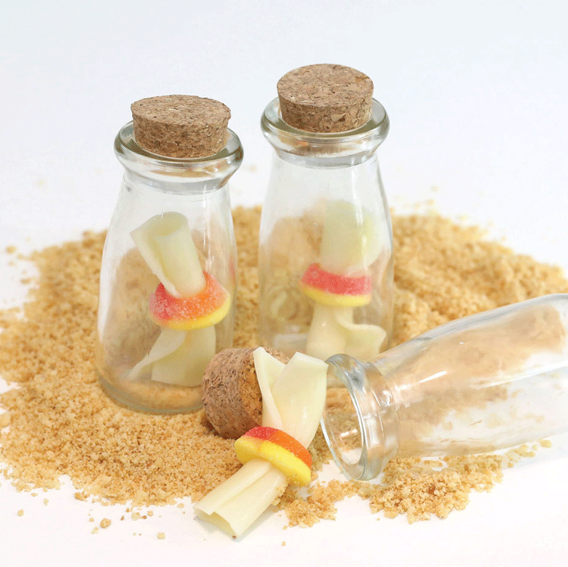 - Place these into glass bottles and top with your favorite clear drink!